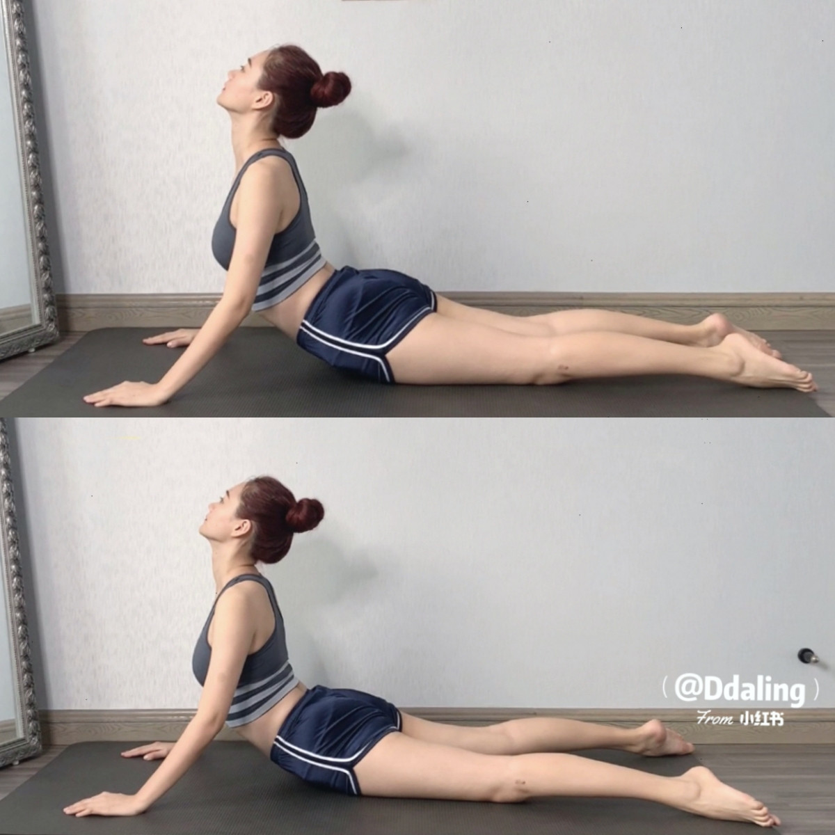 俯臥在瑜伽墊上,雙手自然支撐在身體兩側,將上半身慢慢撐起、同時頭也盡量向後仰,雙腿可自然分開,感受腹部的拉伸感之外,這個動作也可以幫助全身的肌肉放鬆,很適合在運動後做收尾。
