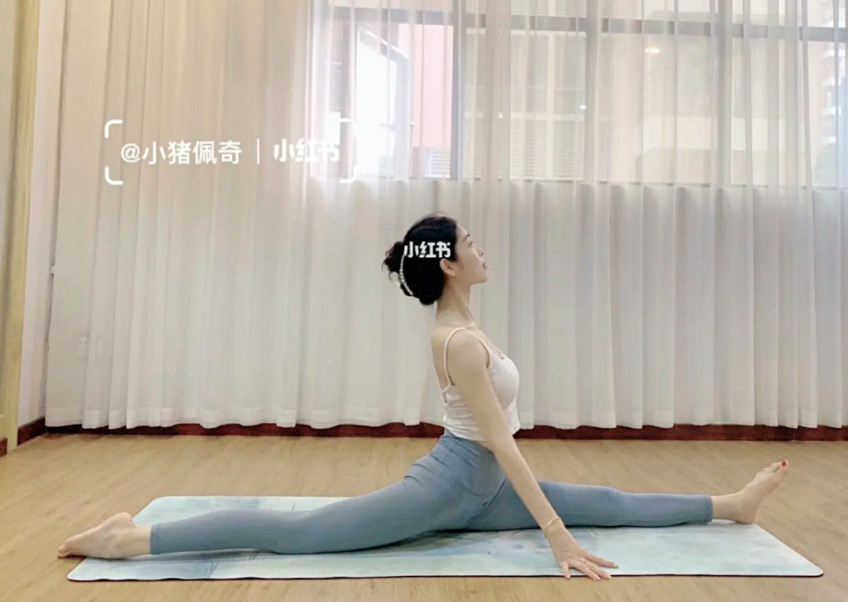 最後就是對腿部拉身相當有效果的一字馬,可以很好的伸展大腿前後側的線條,對初學者來說如果比較難的話,也可以將枕頭或軟墊墊在臀部下方,堅持以上的動作,循序漸進,就可以完成一字馬。