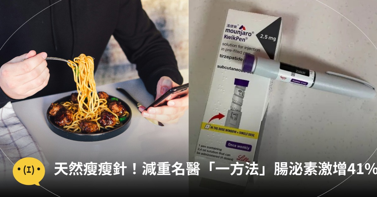 瘦瘦針主要成分腸泌素GLP-1,是一種人體自然激素,主要作用為刺激胰島素分泌以降低血糖、抑制食慾及延緩胃排空,從而增加飽足感減少進食,瘦瘦針GLP-1受體促效劑藥物即是模擬此機制,廣泛應用於糖尿病和減重治療,並有助於改善心血管疾病。減重名醫蕭捷健指出,其實腸道每天都在分泌免費腸泌素GLP-1,而且只要「放慢吃飯速度」,就能讓腸泌素GLP-1增加41%!