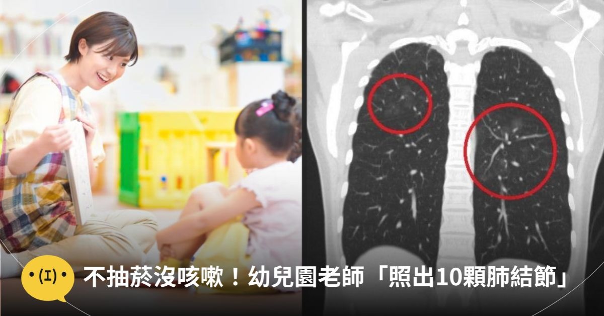不抽菸也沒有咳嗽,怎麼會這樣?一名30多歲的幼兒園老師,到大醫院自費做低劑量電腦斷層時,赫然發現肺部布滿多顆毛玻璃結節,最大的甚至超過1公分,這個情況讓幼兒園老師大吃一驚,趕緊就醫尋求幫助。
