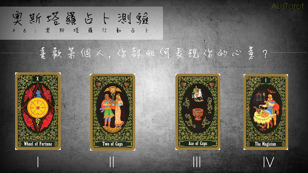選到這組牌的朋友,面對喜歡的對象你可就直接了當不拐彎抹角囉!這樣的牌組多半代表的是直接與表示!所以你似乎不太喜歡拐彎抹角的表示心意,當然也不是那種老把我愛你或我喜歡你掛在嘴邊!而是你會從朋友下手請朋友敲邊鼓,自己也會積極地製造機會和你對象相處!甚至會刻意表現自己良好的那一面給對方看,你不要那種直接了當的表白,在這之前你會刻意的製造些良好印象,讓你喜歡的你對你也有一些好感唷!畢竟你也怕突如其來的告白,把對方嚇跑了該怎麼辦呢?所以基本上你也是那種十拿九穩的狀況才表示心意的人囉!