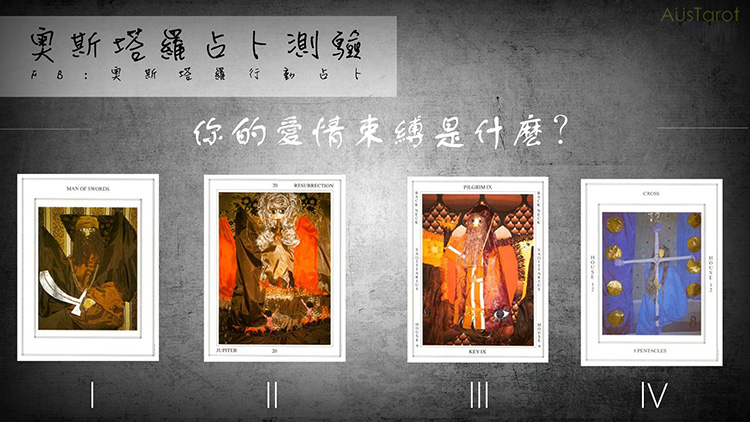 選擇到這張牌的朋友,奧斯不得不說你們天性就是挺簡單、單純的人,所以每次在談感情的時候很容易就付出了自己,也會希望跟目前的對象持續地走下去,即使過程中遇到些爭執或狀況,你也滿相信能夠透過磨合與溝通去解決。另外特別的是,你們並不是個喜歡愛情世界一直存在變動、不喜歡一直在愛情世界裡頭汲汲營營的去尋找對象,所以當你們一旦踏入了感情就會希望對象是你最後一個,但也就因為你相信感情能夠溝通、能夠磨合,也懶得再尋找其他對象,所以就容易將自己束縛在一段感情裏頭囉!