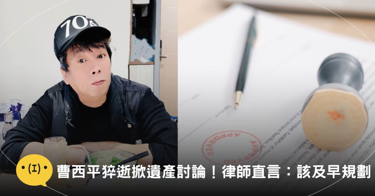 資深藝人曹西平日前驚傳猝逝,享年66歲,震驚演藝圈,也意外引發社會對「遺產繼承」與「特留分制度」的關注。