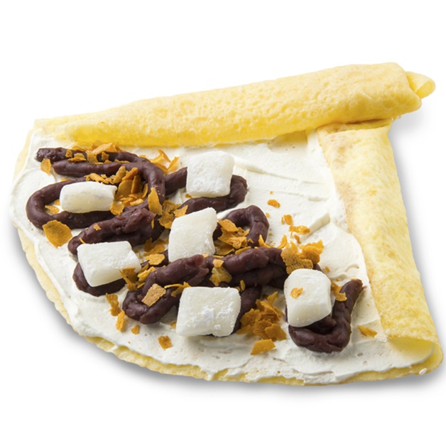 這個看起來口味特別的可麗餅則是只有在摩耶港咖啡店(摩耶ハーバーカフェ)才吃得到的獨家商品,也是不容錯過的單品。照片看起來很像巧克力棉花糖口味,但其實是非常特別的小倉紅豆麻糬奶油口味,感覺非常值得一試。