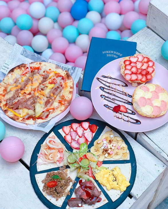 台中後火車站最近有家咖啡廳爆紅,就是「某處 Somewhere」啦!它是由廢墟改建而成,有大片空地、木箱、燈飾等等,就像是來到拍攝電影的場景似的~內部裝潢也是充滿工業風,微帶點韓國fu!除了店上裝潢很好拍外,其中最多人點單的就是「選你愛吃的 披薩」可以自由搭配自己想放上配料的披薩,可甜可鹹,草莓煉乳、香蕉水果口味就是好夢幻,好少女~
