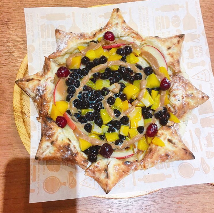 提諾比薩有超~多家分店的,中北部是大本營,真的可以不用擔心吃不到(哈),這裡是比薩的專家,其中以甜比薩最多人討論,尤其是將「珍珠」融入水果披薩中的「珍奶甜星披薩」,視覺上真的100分,非常欠吃,口水滿地流~據說吃起來超有層次感,有餅皮的酥脆、珍珠的Q,水果的香,Mix在一起很銷魂~