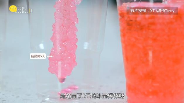 5天會形成大小最完美的棒棒糖,把表層的薄晶輕輕敲碎之後,就可以把棒棒糖往上直接取出!