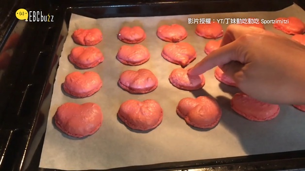 愛心放置到手指觸碰也不會沾黏時就可以進烤箱囉,烤出漂亮的裙邊,且馬卡龍外表堅硬穩固就可以取出惹 (*´ω`)人(´ω`*)