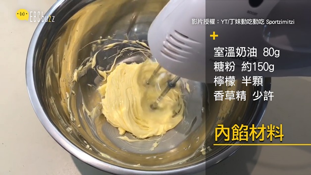 最後剩下檸檬香草奶油內餡的製作,把內餡材料通通打在一起,並放入擠袋中,烤好的馬卡龍擠上內餡