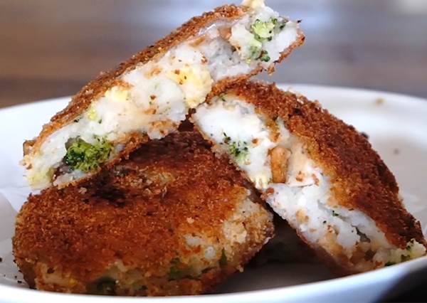 分成適量的大小,大致上可以分成4~5塊,用手捏成排狀後,裹上麵糊放進麵包粉裡,沾好沾滿!