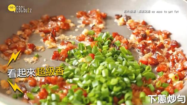 依序把臘腸、蝦米還有蔥下鍋炒勻,光是用看的就香噴噴呢><