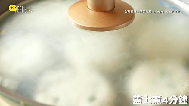 放進平底鍋後,稍微用鍋鏟壓扁,然後蓋上蓋子煎4分鐘