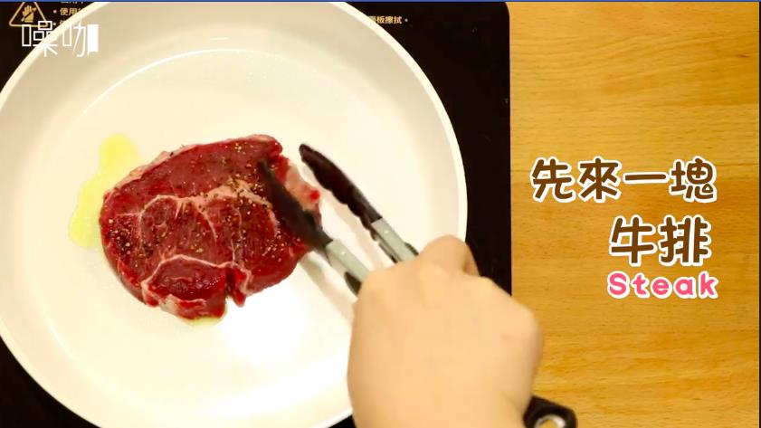 這時候你閒著也是閒著,就來接著準備漢堡配料啦!將牛排依個人喜好煎至適合熟度,像伊編喜歡5分熟(沒有人問你)!!!煎牛排的火侯掌握就非常看技術了,因為牛肉很快就熟,沒注意到就老了(我指肉)~