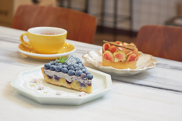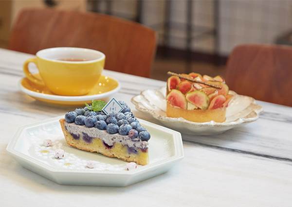 新鮮無花果塔140元(後)/使用屏東新鮮無花果,搭配番石榴果醬、卡士達內餡,滋味清新。我的藍莓夜140元(前)/在派皮中加入薰衣草籽,花香搭配藍莓乳酪與新鮮藍莓,揉合成新滋味。