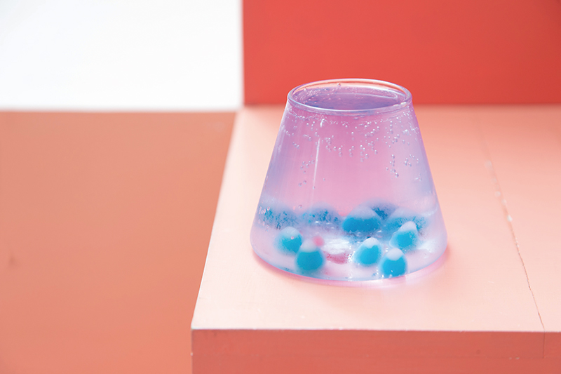 白雲的眼淚200元(右)/氣泡水中加入以新鮮水果自製的果凍球,接著在上層放上棉花糖,超吸睛的外型是來店必點品項!檸檬森林160元(左)/將檸檬塔元素拆解後,放進可愛的罐子,吃起來酸中帶甜,很好入口。