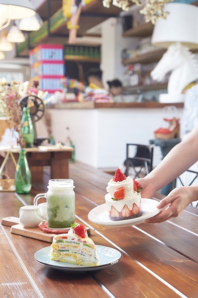 Bonnie sugar是一家源自高雄的手作甜點專門店,北上之後先於師大商圈開設分店,去年五月再開設森林店。擁有迷人笑容的老闆兔子笑著說,因為師大店的空間實在是太小了,為了提供一個更好的座位區給客人,讓他們能夠悠閒享受甜點時光,便決定再開一家店。以繽紛色系打造的門面充滿夢幻氣息,走進店裡,帶有工業風痕跡的空間個性十足,不但特別找來厚重鐵門區隔廚房,也刻意裸露屋頂管線設計;而大量運用乾燥花裝飾與入口處展售的日式雜貨區,則散發著濃濃文青味。店內除了供應手作甜點,也同時展售雜貨與少許服飾,是一間充滿溫暖氣息的甜點店,相當適合與三五好友在此度過愜意午後。