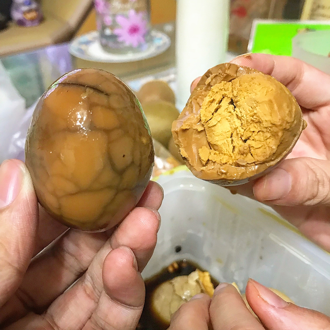 aliceyu217:聽同事說去現場沒吃到 燃起想吃必吃的鬥志🔥 從下單到取貨等了20天,幾乎忘記有蛋蛋的存在, 很多細小蛋殼有點難剝,從蛋白到蛋黃都非常入味, 蛋白是一種說不出的Q脆口感,蛋黃是鬆軟濕潤綿密的,茶葉蛋口味偏甜有中藥香,覺得比所長好吃😅😅