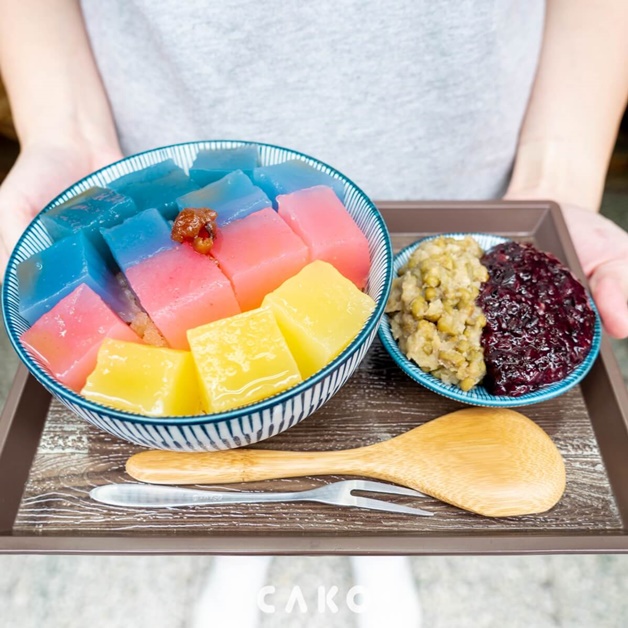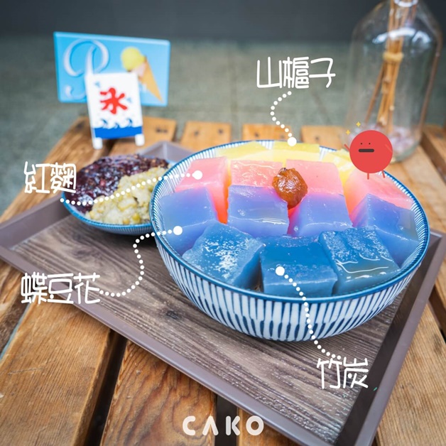 夏日最吸睛的就屬這款綜合粉粿冰了,不要看七彩的外表,其實每個顏色都是天然食材製成呢!黃色的山槴子、粉色的紅麴、紫色的蝶豆花、黑色的竹炭,不添加任何化學物質是老闆的堅持!