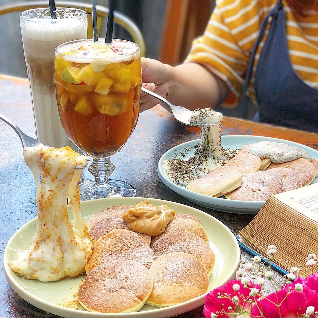 台南地區由老宅改建的文青咖啡廳,主要的餐點有早午餐和鬆餅,其中鬆餅的部分相當受歡迎,更有以鮮奶麻糬和鬆餅搭配的組合,花生或芝麻麻糬鬆餅+飲品任選只要220元,一份鬆餅就有八小塊,把麻糬夾在鬆餅裡吃相當特別,一點都不違和!