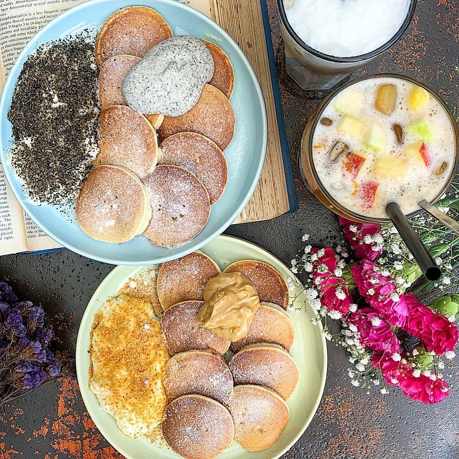 一旁的鬆餅還可以沾上花生(芝麻)醬,可增添點風味,特別是帶有顆粒的花生醬,濃郁香醇尬~好想買吐司裹來吃呦(˶‾᷄ ⁻̫ ‾᷅˵)