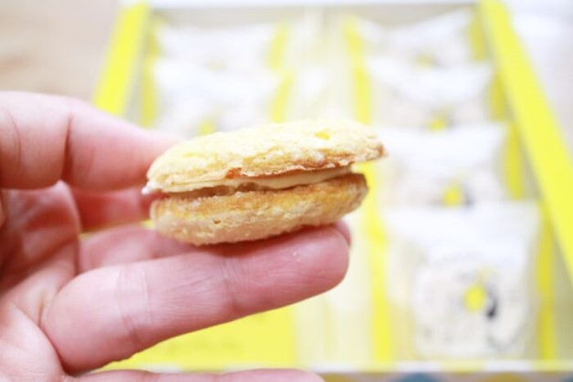 最後奢華地擠滿白巧克力與檸檬口味結合的奶油夾心,裡面再放入帶點苦味的糖漬檸檬碎片,這就是東京Lemomche美味的秘訣,全部凝縮在這一個小巧精緻的檸檬奶油夾心餅乾裡。
