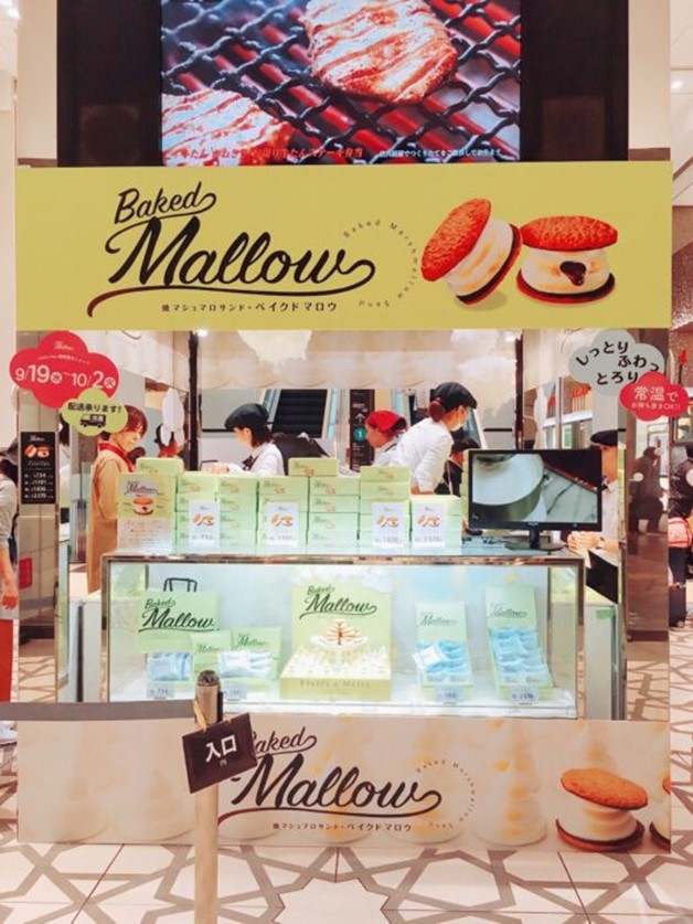 順便介紹另外一款以同樣手法販賣的東京伴手禮「燒烤棉花糖三明治餅乾Baked Mallow」,將美國傳統的營火燒烤棉花糖又更進化了,創造出以往都沒有過的新口感與滋味,擄獲了不少消費者的味蕾。它美味的秘密首先在於扎實香濃的餅乾,用全麥粉和小麥胚芽粉做成的厚實餅乾帶點鹽味加深了不少印象,一面塗上香濃芳醇的巧克力醬是最大的魅力。