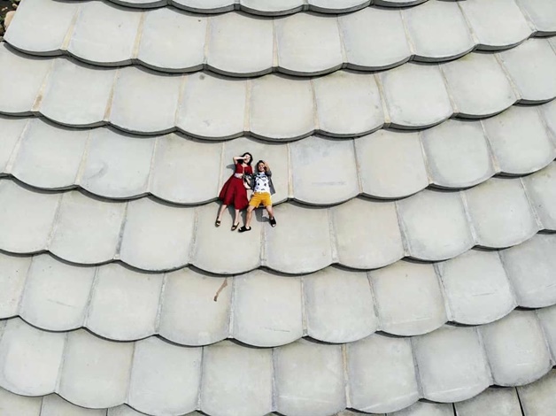 魚鱗天梯的設計,原本是希望連接起旁邊的放風箏綠色草皮,將陸地規模延伸到大海,讓大家能更近距離欣賞海景,因次才將方形的消波塊整齊的一塊一塊堆疊在一起~看起來就像魚身上的魚鱗,有種可愛的感覺呢!