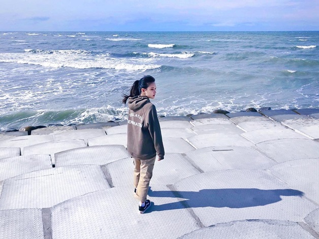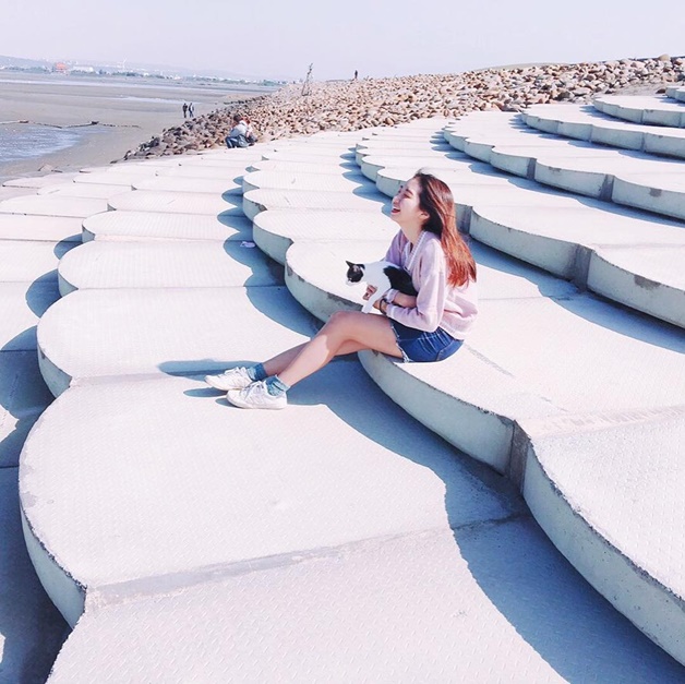 白色又整齊地排列,用原始的水泥塊組成的豆腐岩,取代了傳統的消波塊,不但保護了環境,更添加了藝術的美感,退潮時站在上面放眼拍去,與身後的大海填滿視覺,真的很美!
