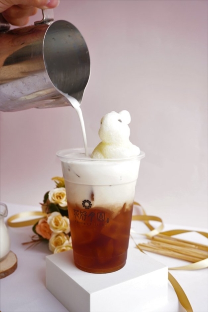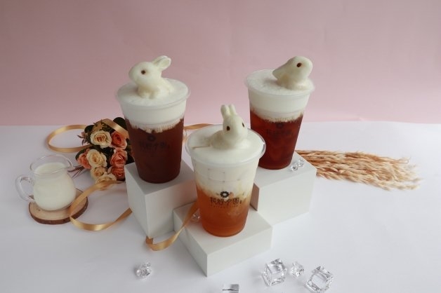 配合「花好月圓」整體店裝風格,帶來療癒系飲品「兔兔來澡茶系列手搖飲」,使用高品質牛乳特製成「萌兔形狀冰塊」,並倒入半杯濃純鮮奶,就是要讓兔寶寶能夠來場濃郁的牛奶浴,雙重香濃牛奶絕對會讓身為鮮奶控的妞妞們暴動!