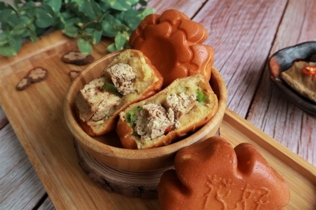 花好月圓的雞蛋糕,這次則帶來非常有味道的「臭豆腐雞蛋糕」,成為夏季限定口味,內餡不僅加入絕門臭豆腐,還不惜成本加入大把青蔥,咬下去會有大爆汁,聞起來帶點蛋香和臭豆腐香,鹹甜交織的口感完美融合,身為臭豆腐狂熱者,絕對不要錯過這款全台首創「臭豆腐雞蛋糕」!