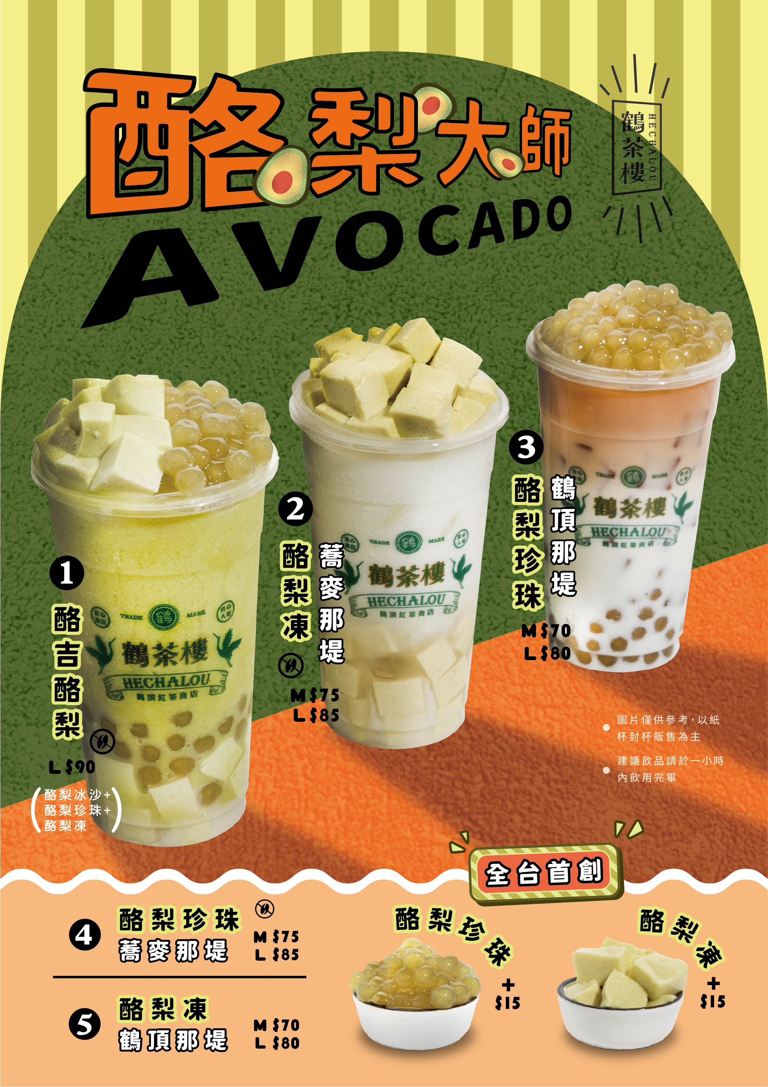 在配料研發上總是敢玩、敢試的鶴茶樓,這個冬天把靈感放在近年大熱的酪梨。期間限定推出多款酪梨系列飲品,從冰沙、凍體到珍珠,完整呈現酪梨的綿密與清香。搭配蕎麥或鶴頂那堤,整體風味意外清爽不厚重,顛覆不少人對酪梨只能做成鹹食的印象,也再次展現品牌在原料運用上的實驗精神。