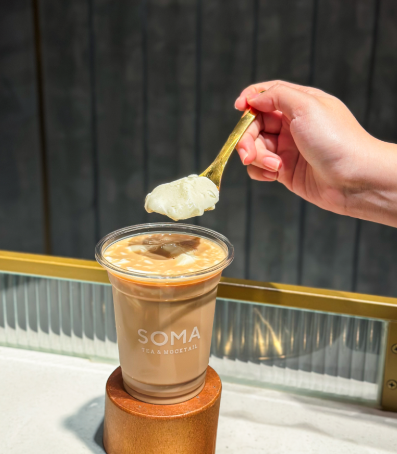 SOMA中山概念店限定聯名企劃,攜手台東人氣名店山海豆花,把天然鹽滷絹豆花直接放進手搖飲。茶歐雷的奶香與豆花細緻口感交織,讓「邊喝邊吃豆花」成為可能,也成功把甜點與飲品的界線打破,成為近期中山商圈討論度頗高的話題新品。