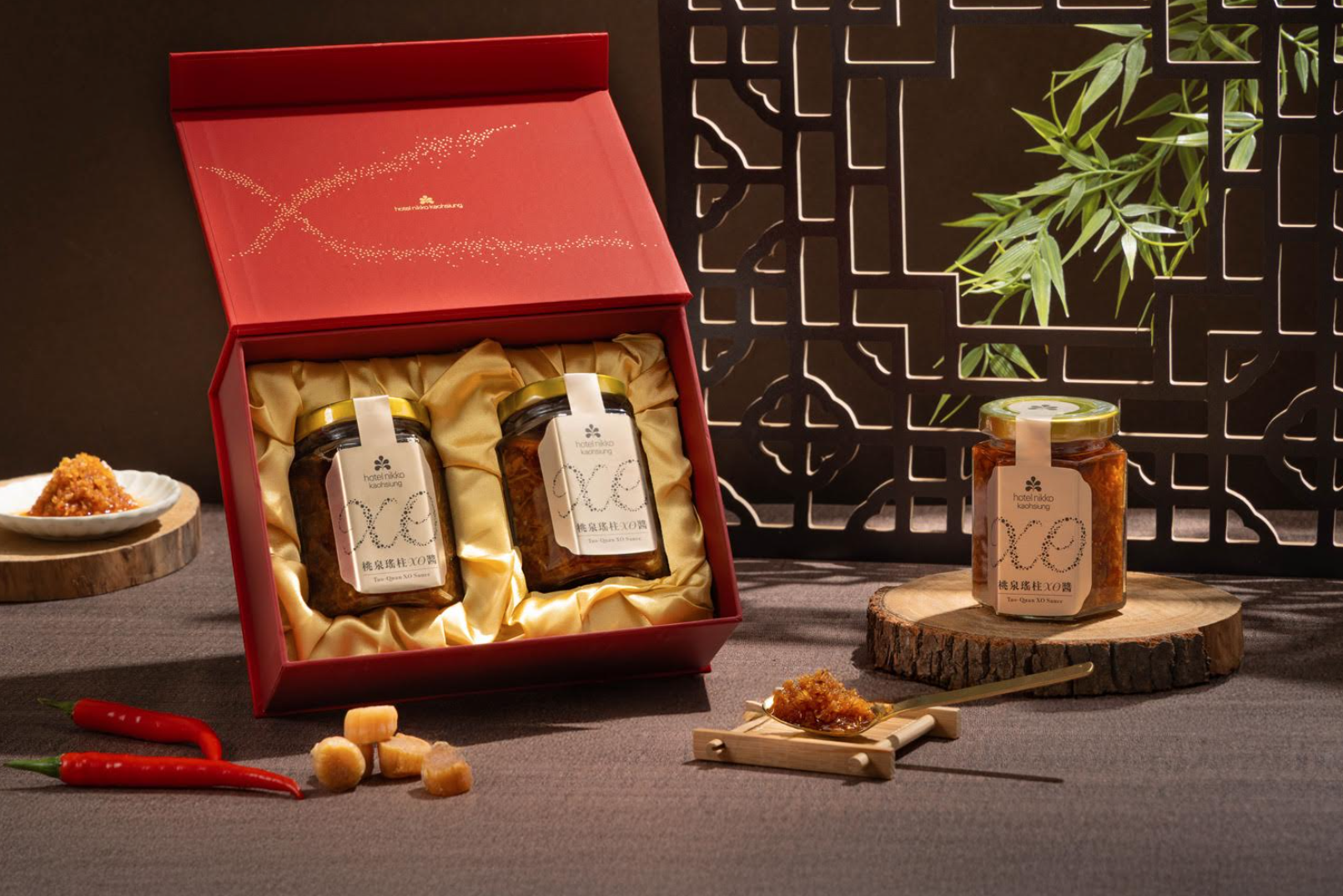 南部代表高雄日航酒店,則以桃泉中餐廳主廚手工製作的瑤柱X.O醬作為年節亮點,選用干貝、金華火腿與蝦米,小火慢煉、靜置熟成,風味濃厚卻不油膩,不論拌飯、拌麵或入菜都能瞬間提升層次,是那種「吃過一次就會記得」的實力派年禮。