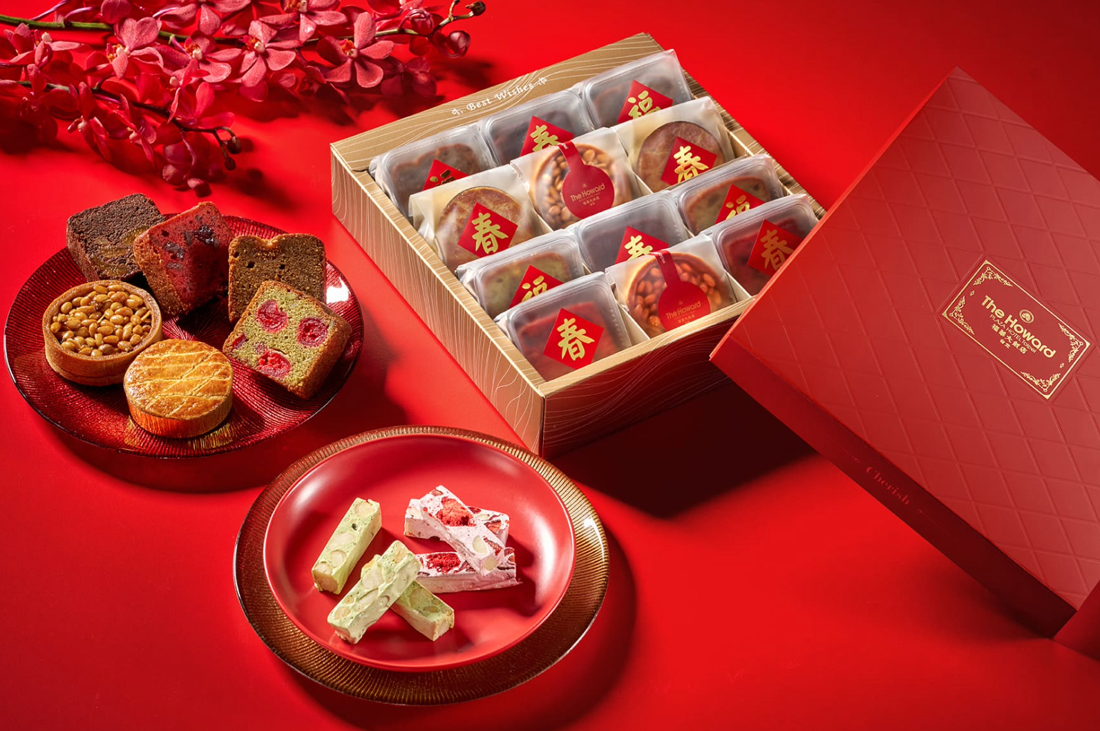 福華大飯店則以「點心坊出品」作為信心保證,推出兩款風格截然不同的春節禮盒。其中以台灣茶入味的牛軋糖新品,將碧螺春茶香融入果仁牛軋糖中,甜度收得恰到好處,茶韻清雅,讓傳統糖果多了一層細緻氣質;另一款法式禮盒則集結多款蛋糕與甜點,從紅心芭樂、無花果到開心果與金棗,口味設計偏向成熟大人系,特別適合送給懂吃、也懂生活的對象。