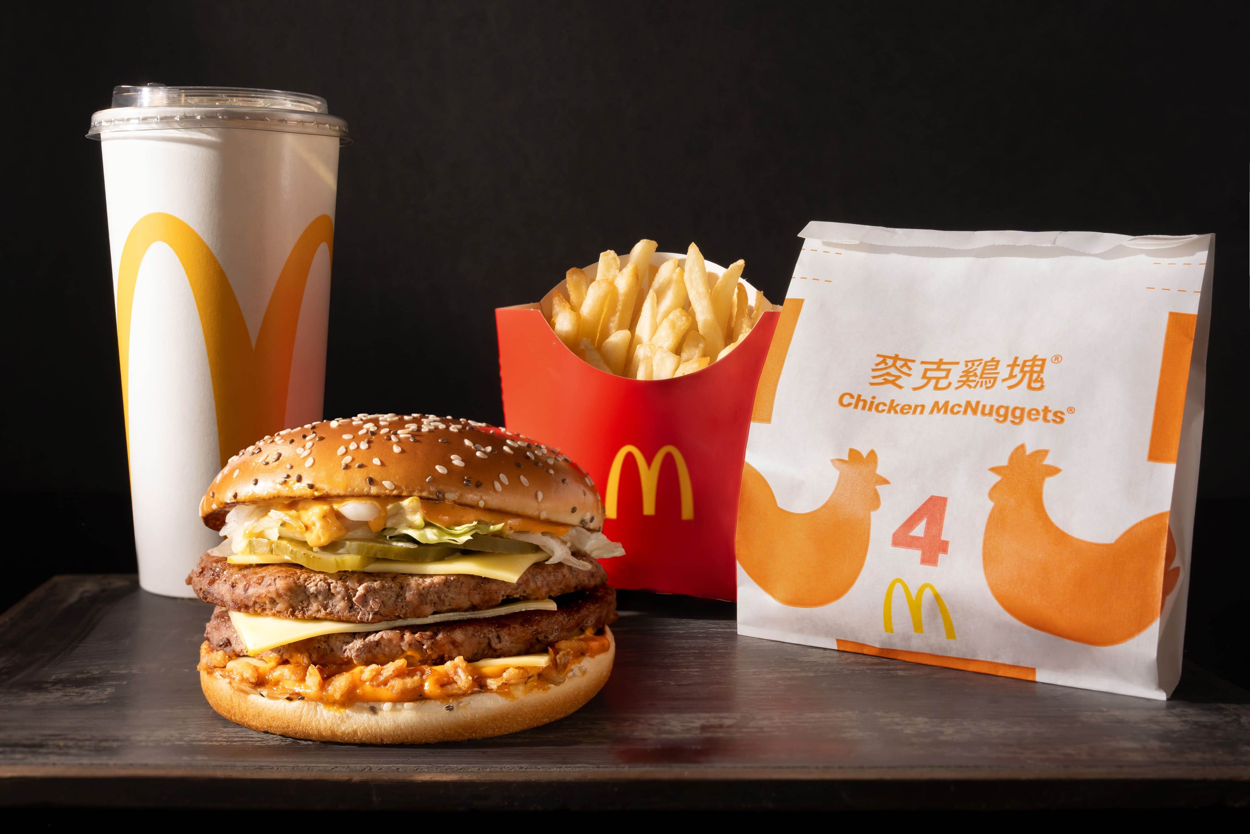 現在購買「Big Arch霸牛堡」任一套餐,再加碼送四塊麥克鷄塊;還有限定「Big Arch霸牛堡分享盒」,一次集結Big Arch霸牛堡、勁辣鷄腿堡、20塊麥克鷄塊與大薯,聚會超適合!
