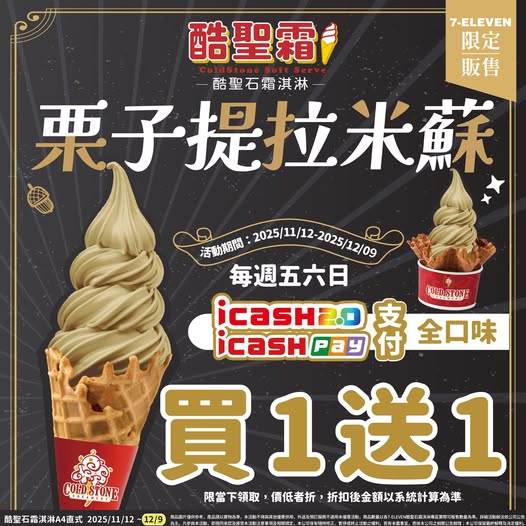 冬季尾聲,酷聖霜霜淇淋端出甜點系新品「栗子提拉米蘇」,以栗子泥結合義式咖啡香氣,入口細緻、層次溫潤,是成熟系甜味路線。搭配指定支付方式,還能享有限定期間的第二件優惠,成為不少網友週末固定報到的理由。