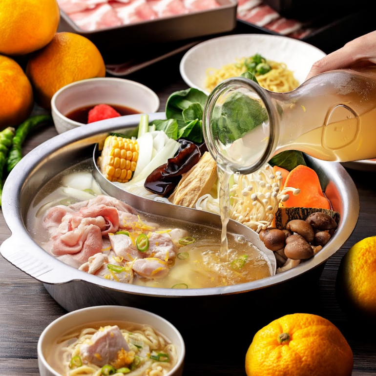 MO-MO-PARADISE即日起推出季節限定「日本柚子塩味火鍋」,每人加價40元升級。湯底以德島木頭香柚熟成醬結合鹽味雞骨高湯,呈現清爽透明的淺金色湯頭。鹽味基底強調食材本味,搭配柚香與微辣尾韻,層次清爽不膩。菜單更附DIY吃法,可將湯底變化為拉麵或乾拌麵,一鍋多吃,增加互動趣味。