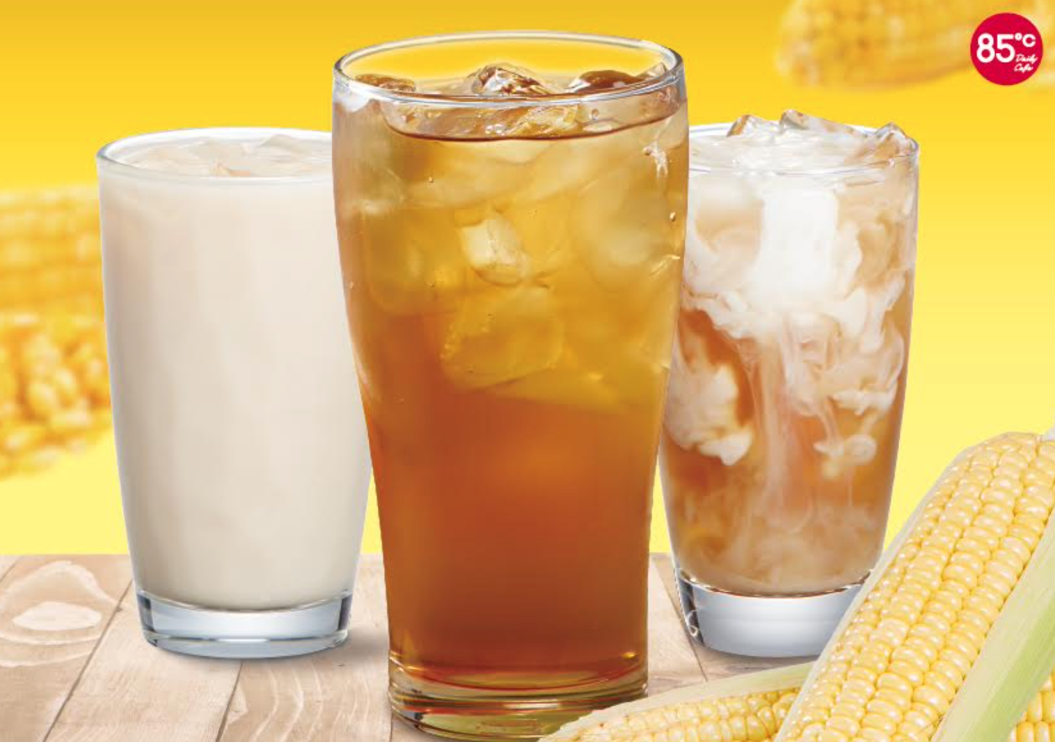 85℃則推出主打清爽與健康概念的「金黃玉米鬚茶」系列。玉米鬚茶帶有淡淡穀物香氣,口感溫潤順口,且不含咖啡因。系列延伸出三種飲品:金黃玉米鬚茶、金黃玉米鬚奶茶、金黃玉米鬚拿鐵,從純茶到濃郁奶香版本都有選擇,適合想找清爽型飲料的人。