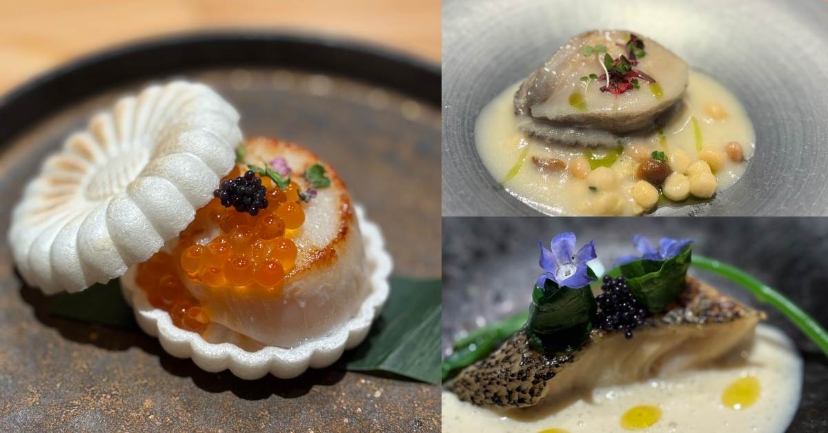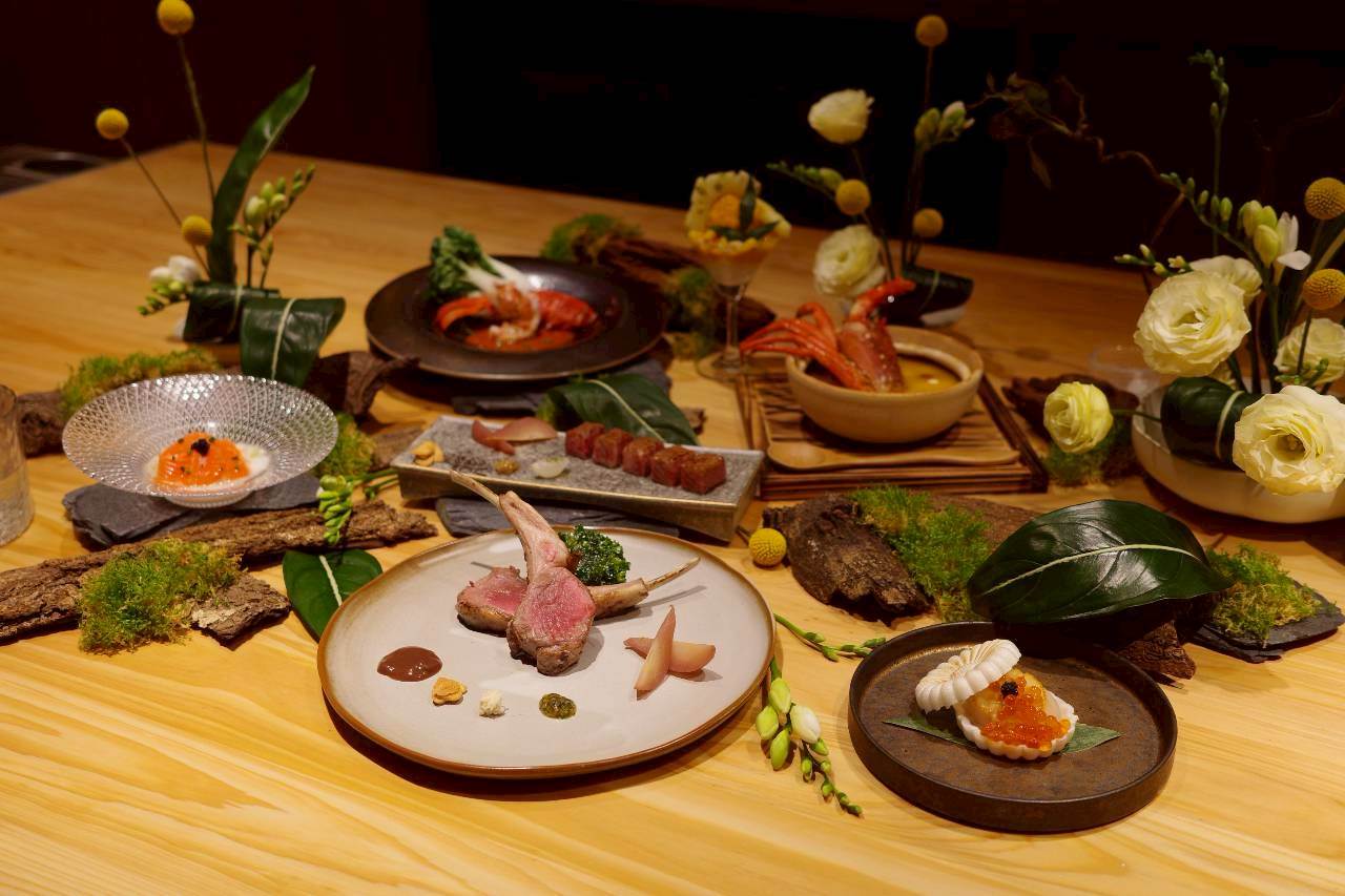 主打的「御品套餐」選用日本A5黑樺牛與紐西蘭LUMINA高地和羊,前者油花細緻、入口即化,後者則被譽為「羊界和牛」,風味乾淨又優雅。料理上更加入「香道」靈感,像是香草燻龍蝦、蘋果木燻鮭魚,讓香氣成為用餐的第一主角。