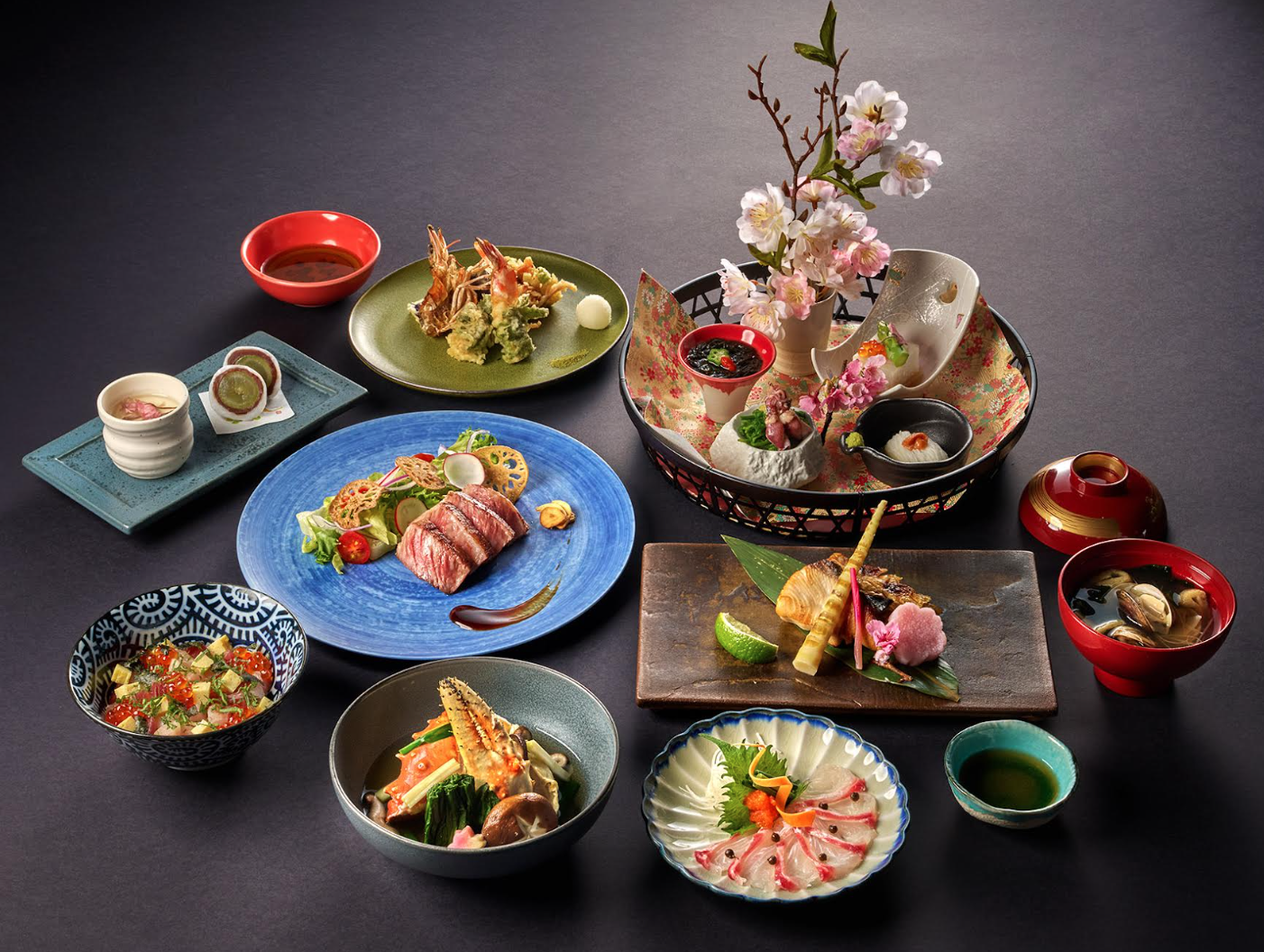 想要一點儀式感?「台北美福大飯店」晴山日本料理推出的「櫻舞翠嵐」套餐,可以說是把春天完整端上桌。從櫻鯛、螢烏賊到鱈場蟹,每一道都是當令海味。前菜以多樣小品呈現層次,接著是鱈場蟹煮物與青甘柚庵燒,展現日料對火候與調味的精準。