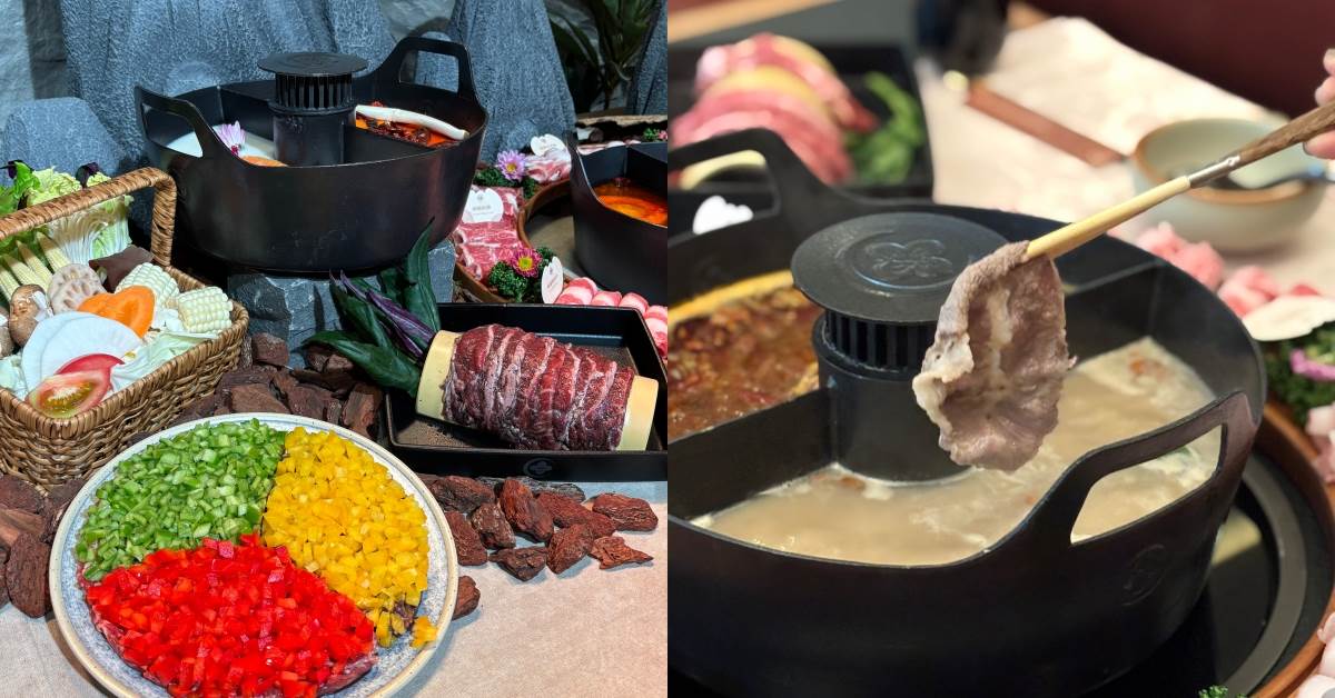 九款湯底是最大亮點,從重慶麻辣的奔放、成都麻辣的細緻,到南瓜酸菜融合的金湯鍋,再到椰香雞湯的清甜,幾乎涵蓋各種味蕾需求。肉品則有趣地推出「9秒牛肉」,講究最佳入口時間,還有視覺效果十足的「山野肉花圈」,一上桌直接變成拍照主角。