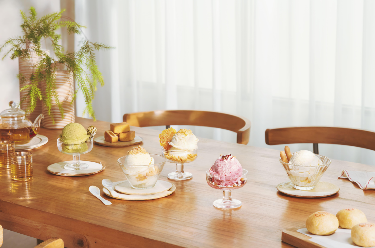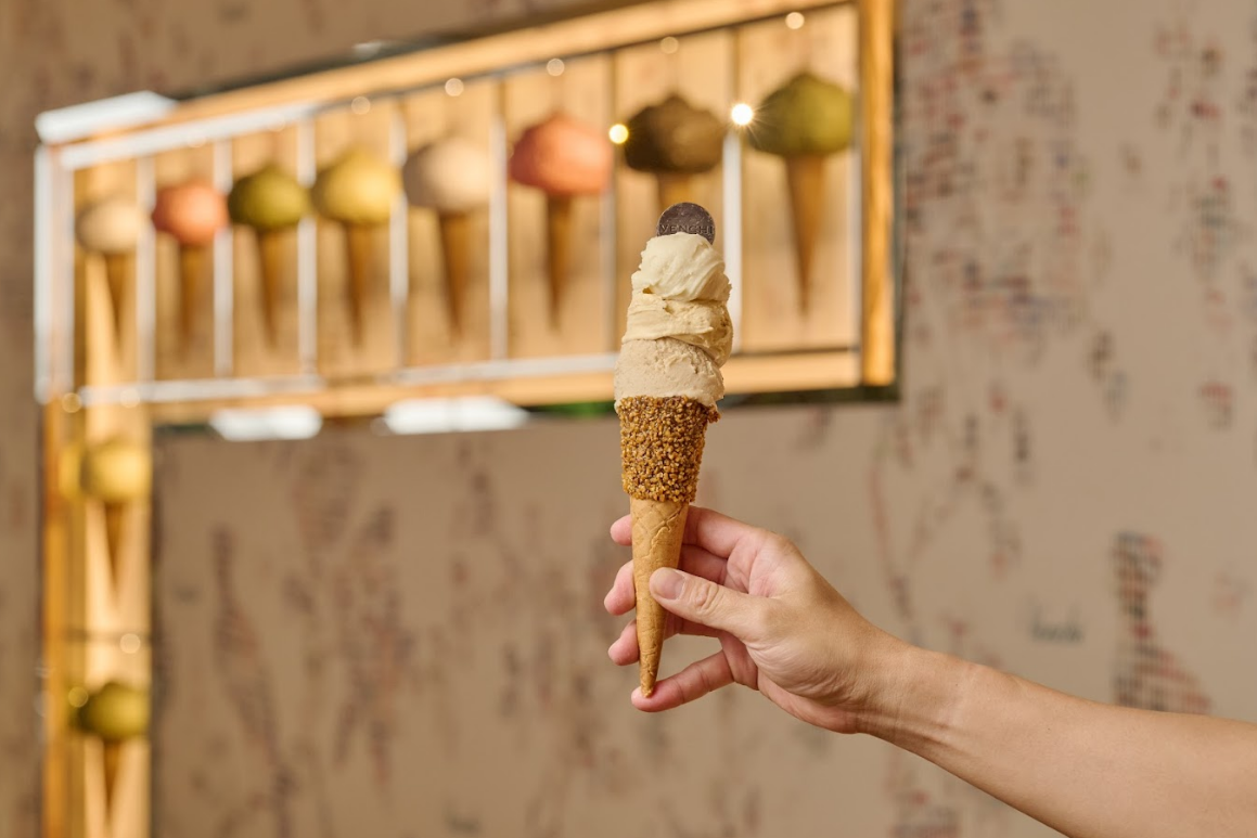 如果你以為漢餅只能配茶,那今年可能要改觀了。舊振南把招牌鳳梨酥、綠豆椪「冷凍重生」,做成義式冰淇淋,像是「鳳和日麗」用鳳梨醬搭配鹽之花奶香,「椪見經典」則把綠豆沙與餅皮口感一起融進冰裡,吃起來真的像在吃一顆冰的糕餅。這種把傳統翻玩的方式,不只是創新,也讓台味甜點更貼近日常。