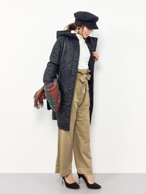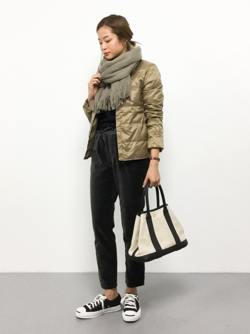 穿上蝴蝶結綁帶的長褲可以塑造出可愛的穿搭♪穿上羽絨外套會稍微有點休閒感,但是把大披肩摺整齊拿在手上的話,感覺立刻不同,變得更有成熟的韻味。記得隨時備有一雙較為正式的漂亮鞋子,也是大人女孩風穿搭所不可或缺的單品喔!