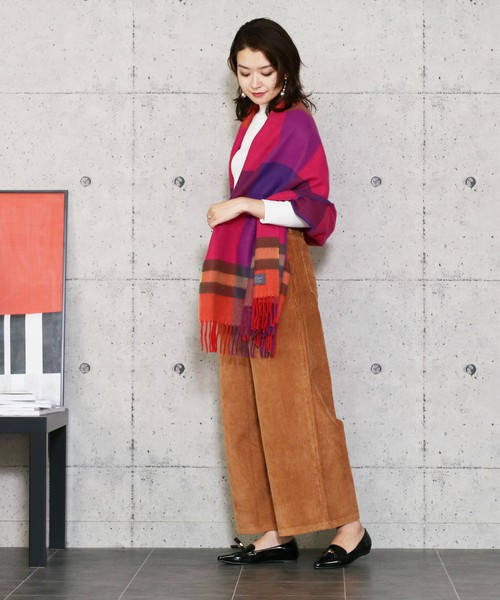 冬季的穿搭常常會偏向於選用深色系,所以大披肩選擇明亮色系的話,讓整體的感覺更為時髦亮麗♪大披肩要尋找適合搭配這條淺咖啡長褲的色彩,整體穿搭才會有一致感喔。