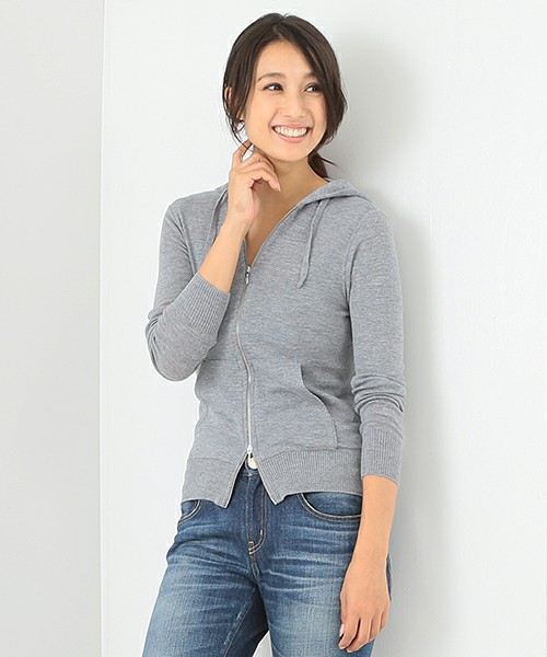 拉鍊有2頭,不管上下哪一邊都可以開闔的連帽上衣,穿起來有種沙漏的顯瘦感。拉鍊稍微打開還可以顯出合身&魚尾裙效果。