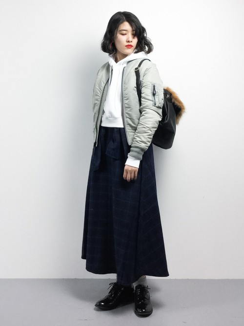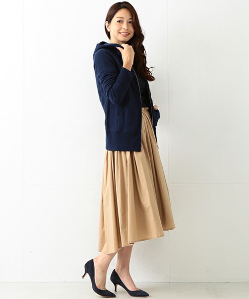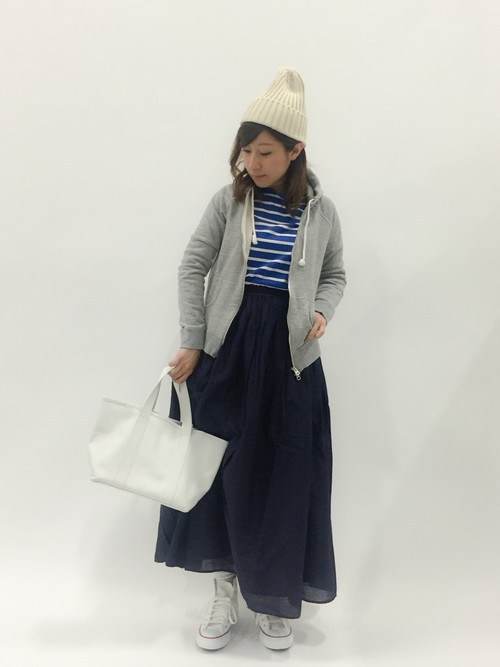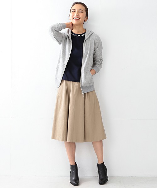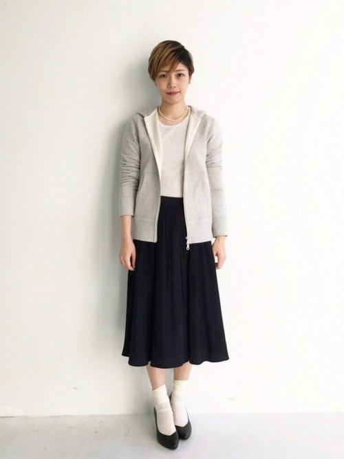柔和色系的灰色帽T配上蓬鬆的裙子可以穿出有著惹人憐愛的俐落休閒穿搭。是從冬天到春天一整年都可以使用的單品,還可以配上呼應季節的鞋子還有圍巾跟包包等等,享受小配件的搭配的樂趣。