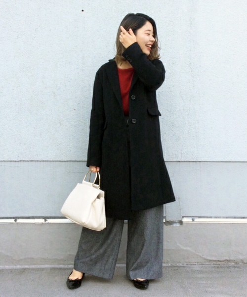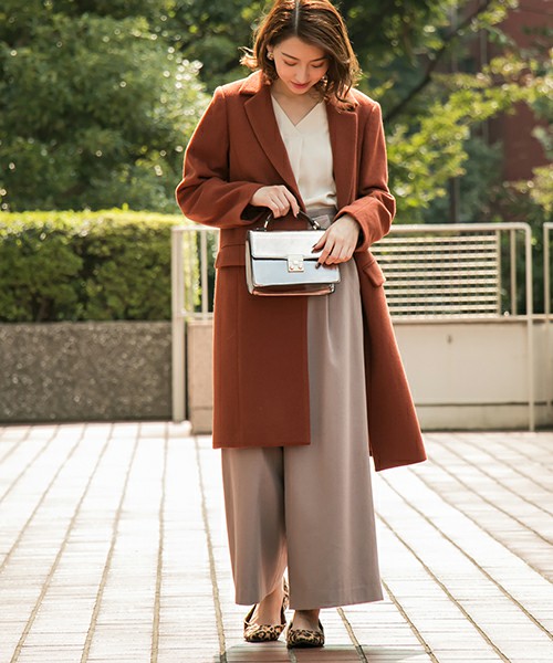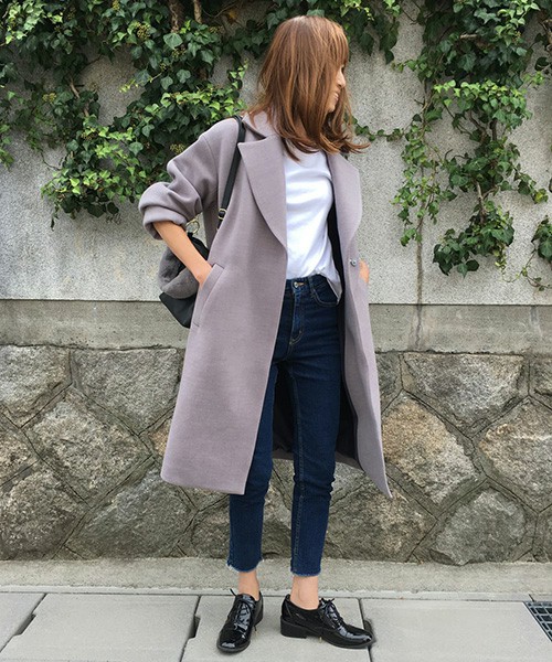 經典基本款的大衣外套,若選擇稍大尺寸更符合今年的流行趨勢♡ 搭配流行寬褲或是成熟的深紅色針織毛衣,能凸顯女性獨特魅力。穿著平底鞋也可增添優雅成熟光彩。