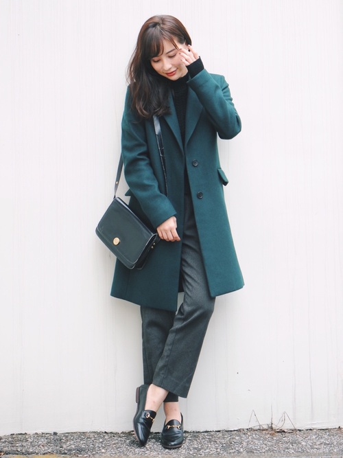 深綠色無疑是時尚又符合冬季的顏色。 選用黑色、灰色等暗色系作搭配相當時髦。穿上帥氣風格的鞋子搭配起來也相當好看。穿著長度到腳踝的褲子還可達到拉長身型的效果。