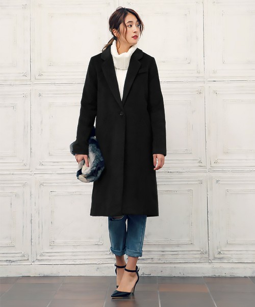 說到時尚又有品味的大衣外套,那一定就是必備的黑色系♡ 外套內可搭配的衣服也不限顏色,是相當超值的單品♪ 穿著有跟的鞋子能達到拉長身形的效果,再搭配針織毛衣與毛絨手提包,更能襯托出休閒又不失流行的時尚感♡