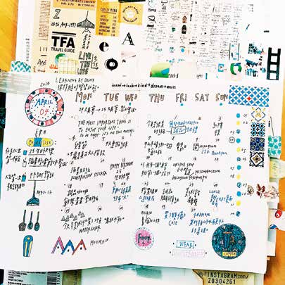 喜歡使用空白或是方眼內頁的筆記本,因為可以依照自己喜歡的風格去拼貼內頁,每一天都很期待打開筆記本寫日記因為不知道下一頁會是什麼樣貌呈現。